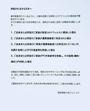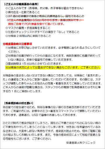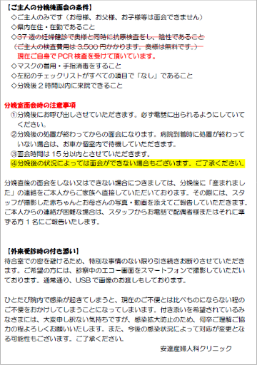 大切な妊婦様・赤ちゃん・そのご家族を守るための対策として、ご理解ご協力のほどよろしく