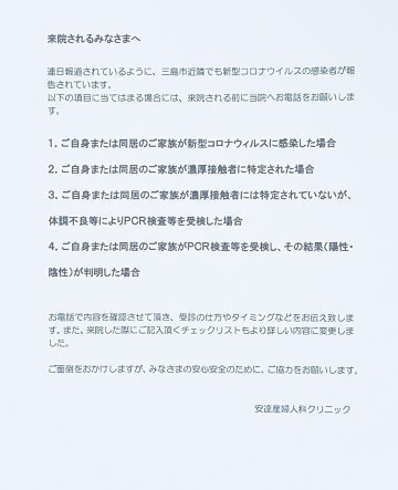 おりましたが、今後は出産等で入院する際に当院で抗原検査をさせていただくこ