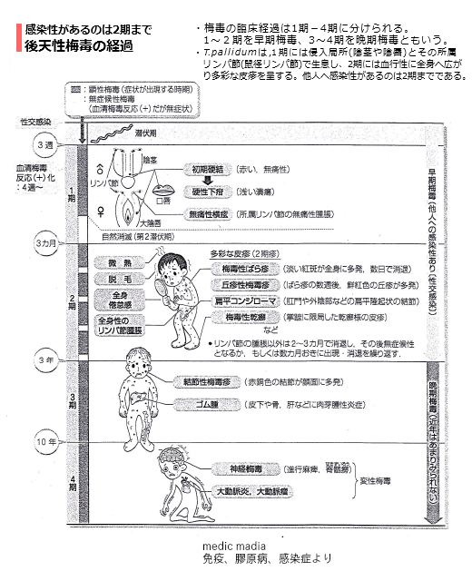 血清反応は感染後STS、FTA‐ABS、TPHIAの順に陽性化する。